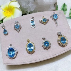 Mặt Dây Chuyền Đá Topaz Xanh Cao Cấp